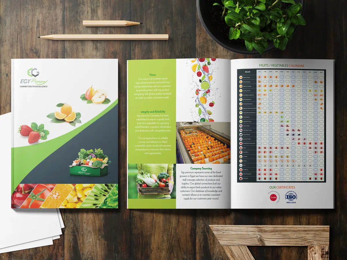كما تم تصميم بروشور ترويجي لشركة EGY Premium، والذي يتضمن معلومات عن المنتجات والخدمات التي توفرها الشركة. تم تصميم البروشور بألوان حيوية وجذابة وتصميم جذاب يجذب الانتباه ويوفر معلومات مفصلة عن المنتجات والخدمات التي تقدمهاالشركة.