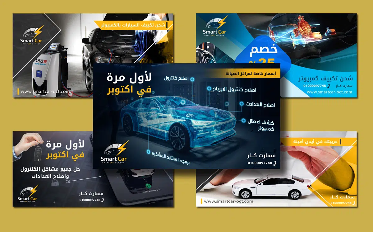 تم تصميم لوجو لمركز سمارت كار لصيانة السيارات باستخدام اللون الأورانج مع تدرجات الرمادي للإشارة إلى الحيوية والنشاط والثقة. تم استخدام خطوط حادة وواضحة لتعزيز شعار المركز وتعزيز الشعور بالمهنية. تم استخدام رسم لجزء من سيارة مع تردجات عداد السرعة ورمز الكهرباء، وهذا يعكس مجال عمل المركز بالتركيز على صيانة السيارات.